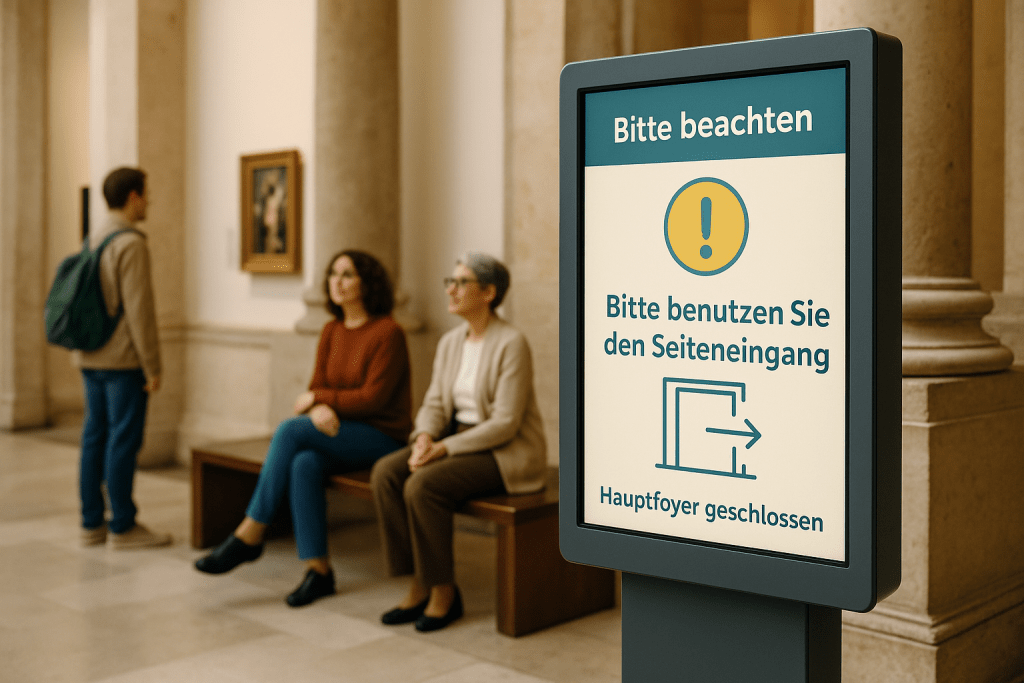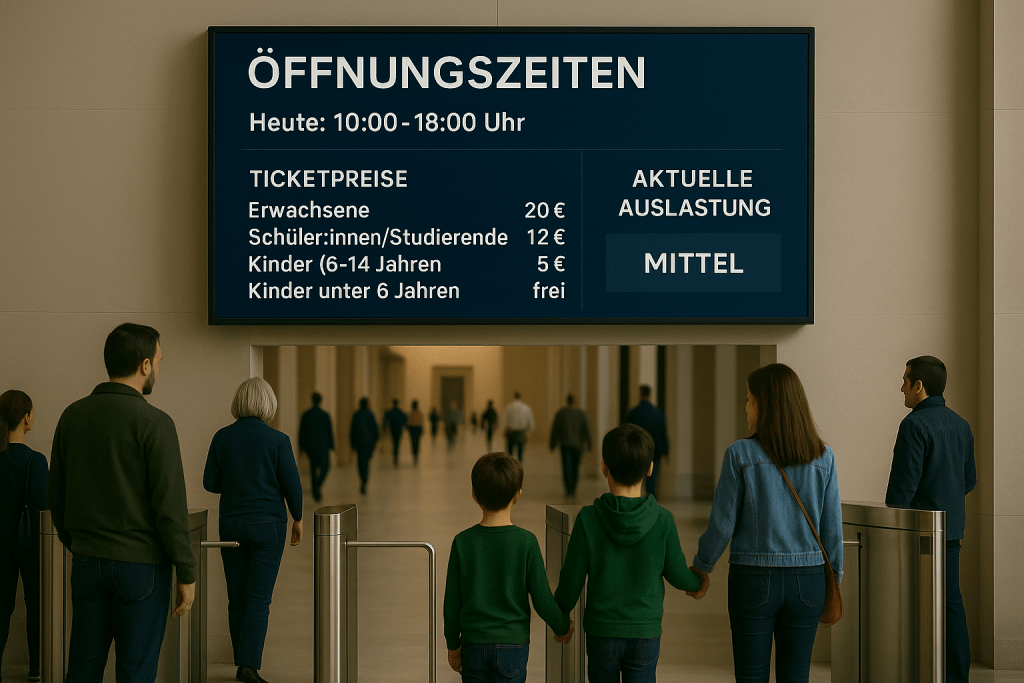 Nutzen Sie Digital Signage nicht nur zur Information, sondern auch als Teil der Kunst: Multimediale Inhalte, interaktive Exponate oder digitale Installationen erweitern das kulturelle Erlebnis.