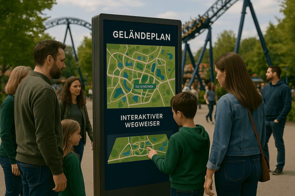 Gerade in großen Anlagen wie Freizeitparks, Ausstellungen oder Kulturzentren sind digitale Karten und Touchscreens unverzichtbar. Besucher finden schnell den richtigen Weg und erhalten Zusatzinfos zu Attraktionen und Services.
