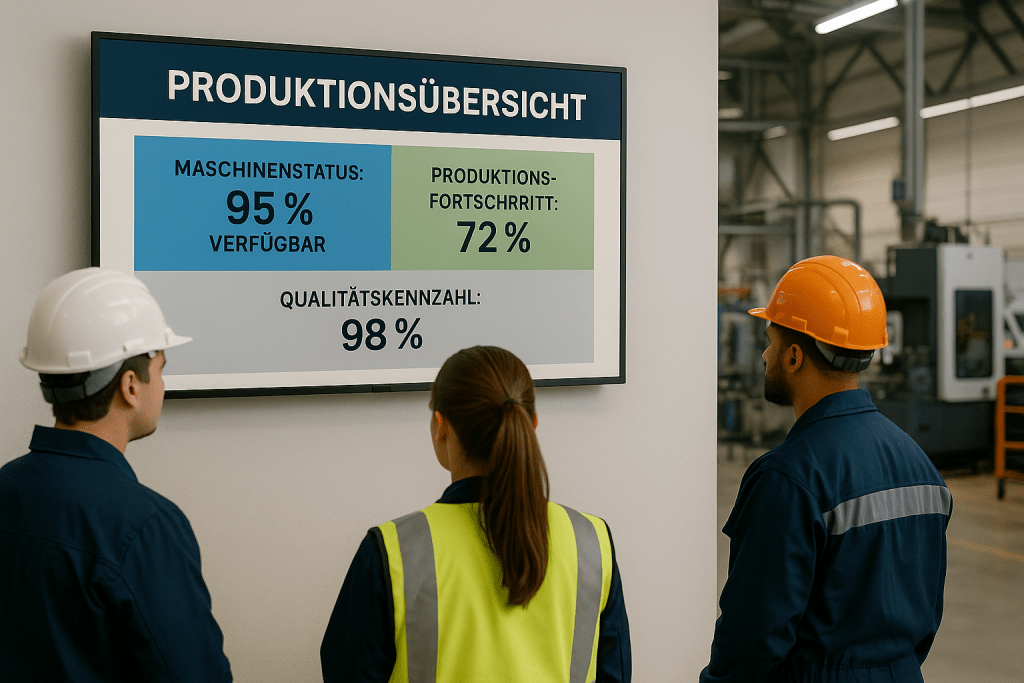 Maschinenstatus, Produktionsfortschritt oder Qualitätskennzahlen können zentral angezeigt werden.